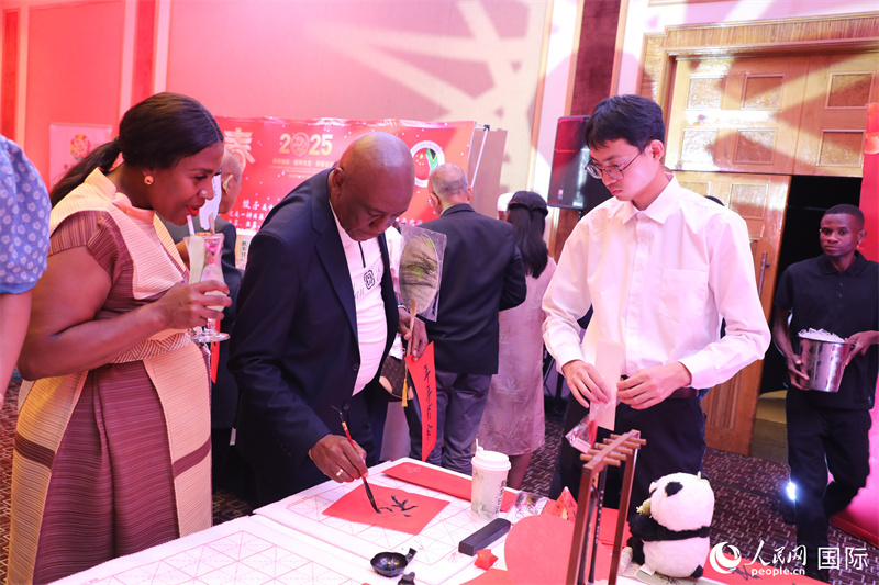 招待會(huì)現(xiàn)場(chǎng)設(shè)立中國(guó)書(shū)法、茶藝、民族服飾、非遺作品等文化展臺(tái)以及水餃、點(diǎn)心、冰糖葫蘆等中式美食品鑒,中南雙方共同奉上武術(shù)、歌舞等文藝演出。與會(huì)嘉賓體驗(yàn)中華文化,品嘗特色美食,現(xiàn)場(chǎng)氣氛喜慶熱烈。