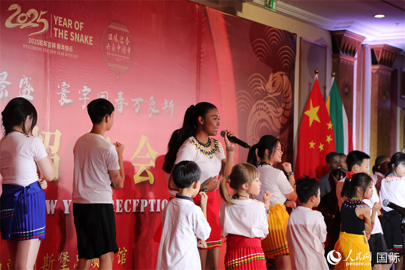 中南兒童在招待會(huì)現(xiàn)場(chǎng)共同演唱歌曲。人民網(wǎng)記者 戴楷然攝