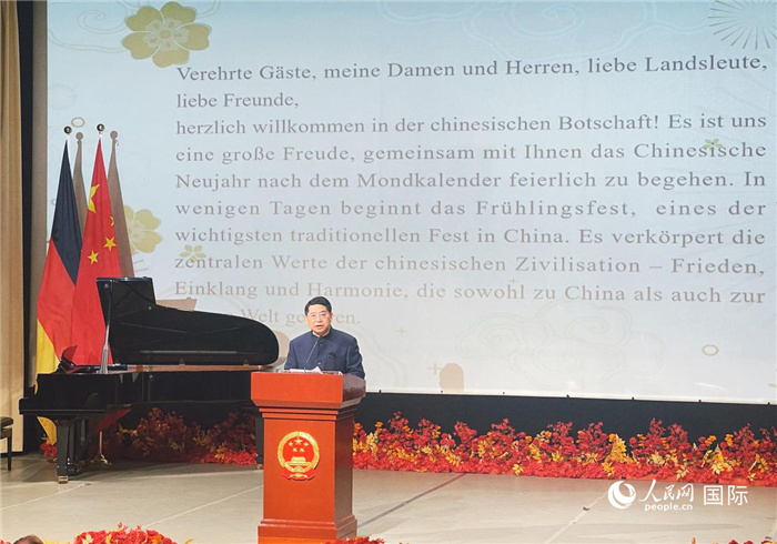 人民網(wǎng)柏林1月26日電 (記者郭梓云、劉赫)1月24日,中國駐德國大使館舉辦“溫暖迎春·共慶中國年”春節(jié)招待會,中國駐德國大使鄧洪波夫婦同各界嘉賓歡聚一堂,共慶佳節(jié)。在德華僑華人、中資機構(gòu)、留學生代表,德各界友好人士,多國駐德使節(jié)等近500人出席。