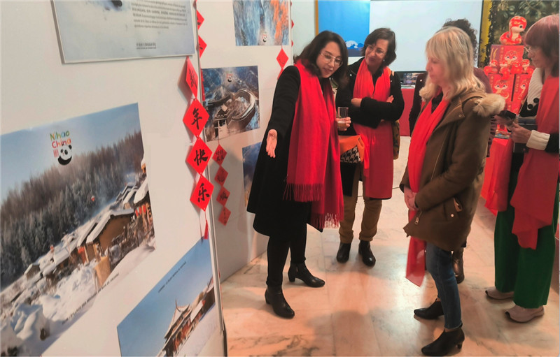 向法國嘉賓介紹圖片展。中國駐巴黎旅游辦事處供圖