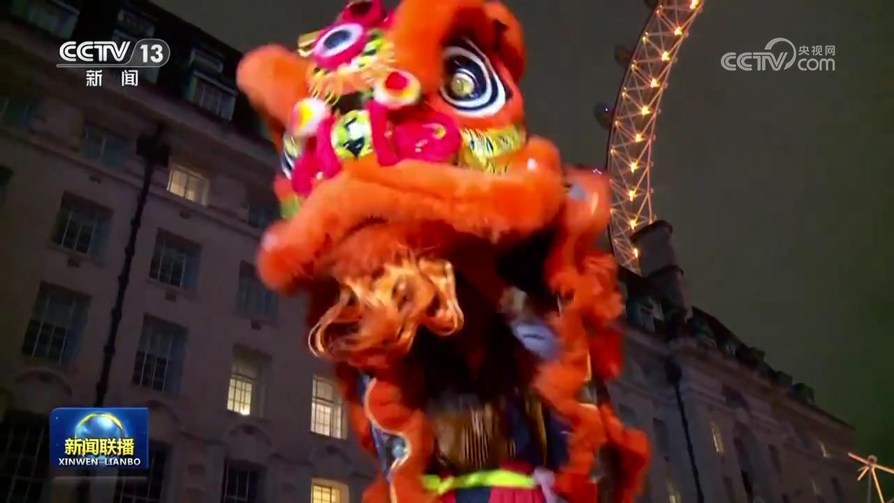 英國倫敦地標(biāo)巨型摩天輪“倫敦眼”在除夕夜亮起紅色和金色燈光,慶祝蛇年新春?!皞惗匮邸备浇€舉行了精彩的舞龍、舞獅表演,現(xiàn)場(chǎng)鑼鼓喧天,年味兒濃厚。
