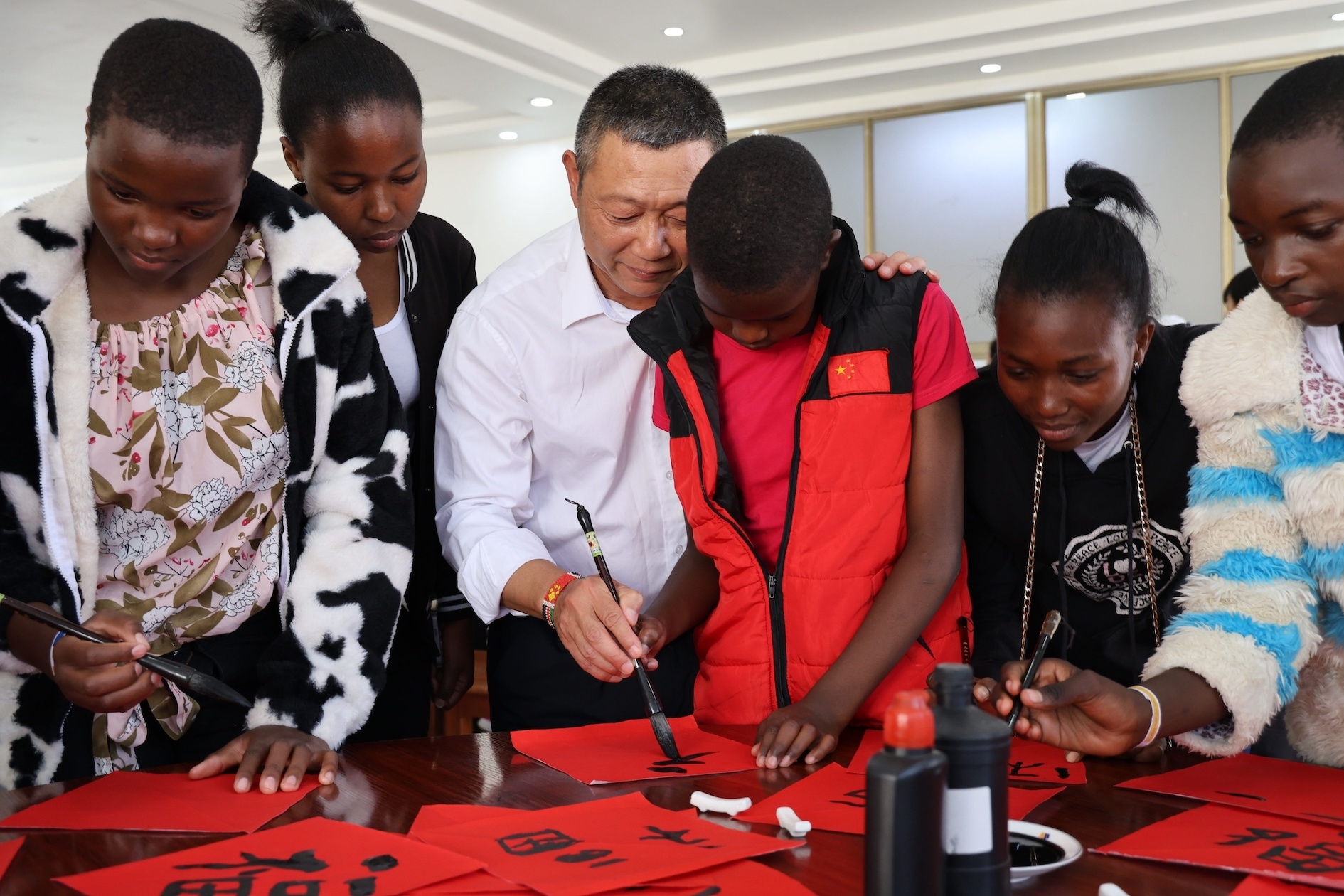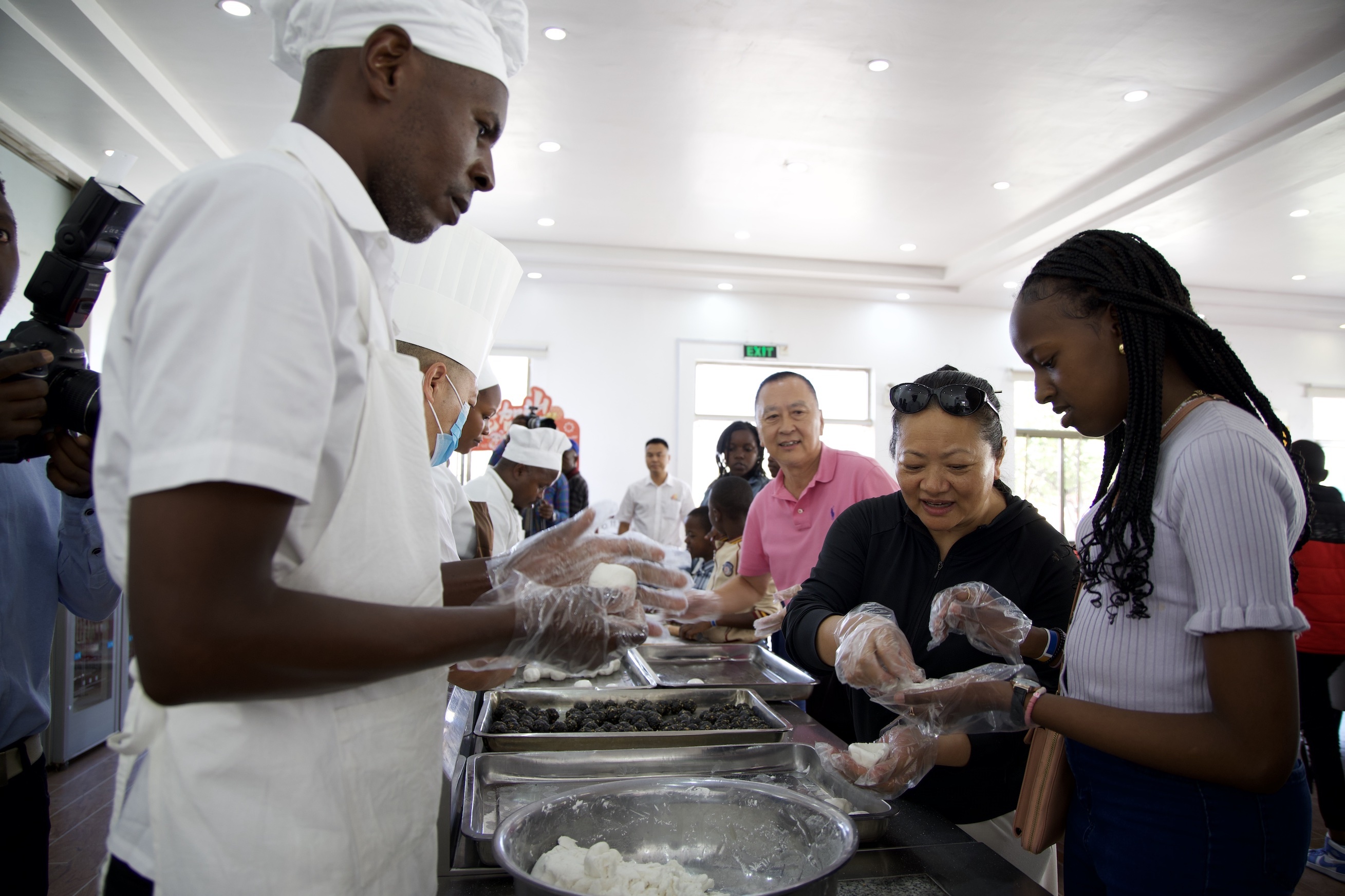 當(dāng)日上午,中肯員工及家屬齊聚機(jī)關(guān)食堂,現(xiàn)場精心布置春節(jié)文化體驗(yàn)展臺和裝飾,年味濃厚。公司顧問薩米稱,邀請肯尼亞員工家屬來到蒙內(nèi)鐵路共慶中國傳統(tǒng)闔家團(tuán)圓的重要節(jié)日——春節(jié),是中肯文化融合的重要舉措之一。孩子們在中方員工的指導(dǎo)下寫書法、包餃子、包湯圓、剪窗花,并品嘗自己親手包的餃子和湯圓,分享新年的快樂和“甜蜜”。