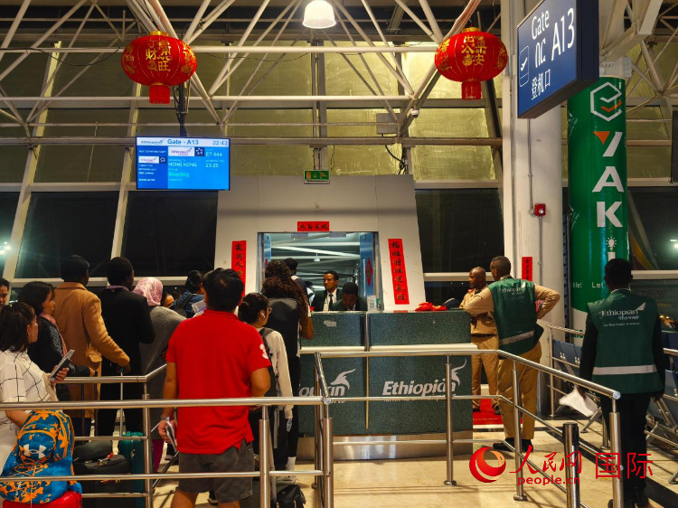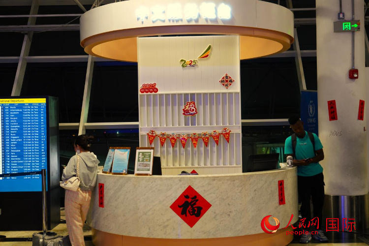 人民網(wǎng)亞的斯亞貝巴1月28日電 (記者黃煒鑫)除夕前夕,記者走進埃塞俄比亞首都亞的斯亞貝巴博萊國際機場,感受濃濃中國年味。紅燈籠、春聯(lián)、中國結……在這座東非最繁忙的航空樞紐里,中國春節(jié)元素隨處可見。