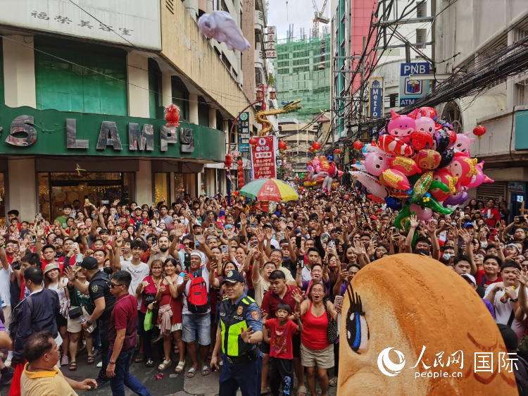活動(dòng)當(dāng)天,馬尼拉中國城到處張燈結(jié)彩,人頭攢動(dòng)。巡游隊(duì)伍由四十多輛精心裝扮、五彩繽紛的花車組成,浩浩蕩蕩,綿延百余米。百萬民眾參與巡游活動(dòng),人群簇?fù)碓谲囮?duì)周圍,一路從馬尼拉市郵政局出發(fā),經(jīng)過瓊斯橋、中菲友誼門、岷倫洛教堂、王彬街等地,最終抵達(dá)美加廣場(chǎng)。黃溪連大使夫婦及華社領(lǐng)導(dǎo)在花車上向民眾揮手致意,送上新春祝福,并派發(fā)新年紅包、中菲友誼衫及糖果、年糕等節(jié)慶食品。沿途民眾群情沸騰,歡呼雀躍,爭(zhēng)相用中文互送祝福,并與花車合影留念。