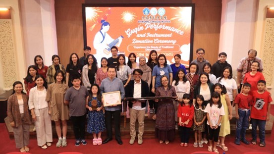 人民網(wǎng)雅加達(dá)2月1日電 (記者李培松)1月31日,正值中國新年大年初三,印尼巴陵康孔子學(xué)院攜手古琴大師楊致儉在該院舉行了“古琴雅韻再現(xiàn)千年風(fēng)華”新春音樂會及古琴捐贈儀式,為觀眾帶來了一場穿越千年的音樂盛宴。中央民族樂團(tuán)國家一級古琴演奏員、故宮博物院特邀古琴專家楊致儉傾情獻(xiàn)藝,印尼伽內(nèi)什師范大學(xué)副校長拉斯賓·丹斯、上海古琴文化發(fā)展基金會曹怡玲和楊自萊以及巴陵康孔子學(xué)院50余名師生出席此次活動。