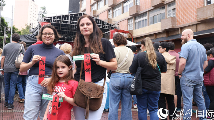 家住附近的拉爾西奧帶著自己的女兒來(lái)到攤位前,讓志愿者幫忙書寫了自己與女兒的名字。“豐富的表演、美妙的音樂(lè),還有特色美食,我感受到了節(jié)日的喜慶?!崩瓲栁鲓W表示,希望明年能夠繼續(xù)擁有這樣的歡樂(lè)體驗(yàn)。