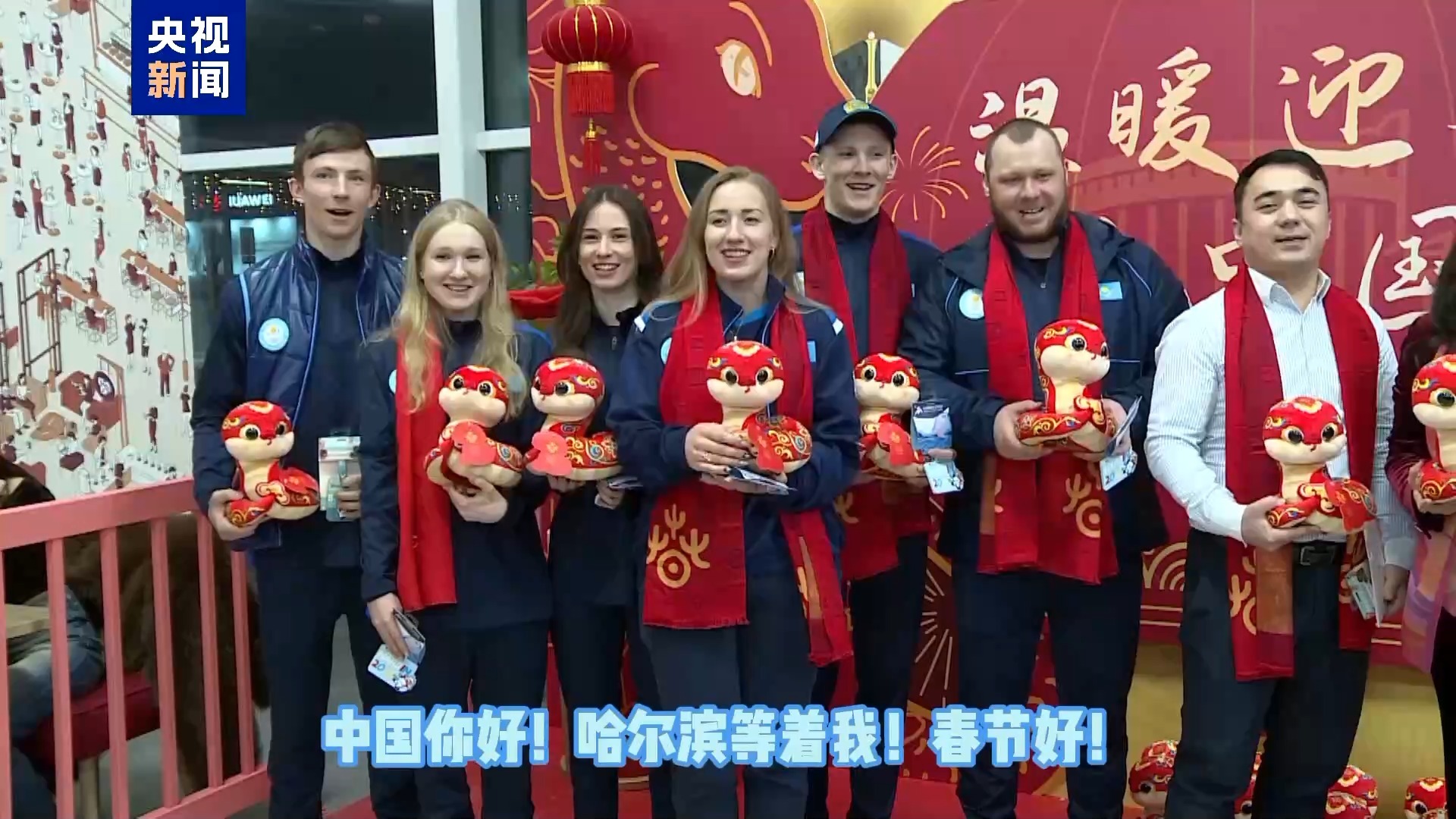 最后哈薩克斯坦高山滑雪國(guó)家隊(duì)全體出征隊(duì)員向中國(guó)觀眾獻(xiàn)上了新春祝福。(總臺(tái)記者 張譽(yù)耀)