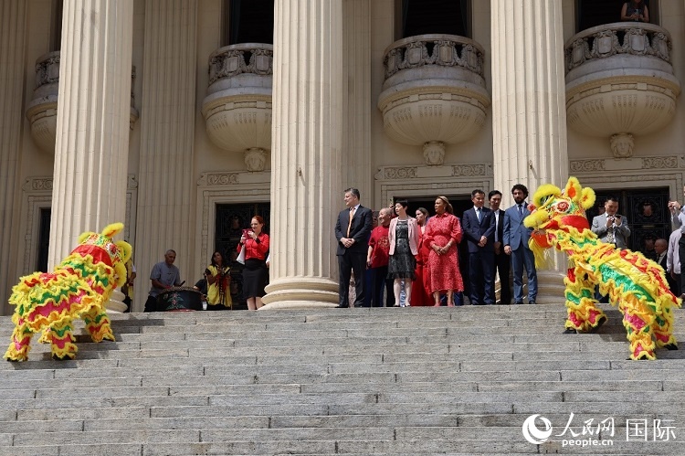 一場精彩的舞獅表演為乙巳蛇年春節(jié)慶祝活動拉開了序幕。人民網(wǎng)記者 陳海琪攝