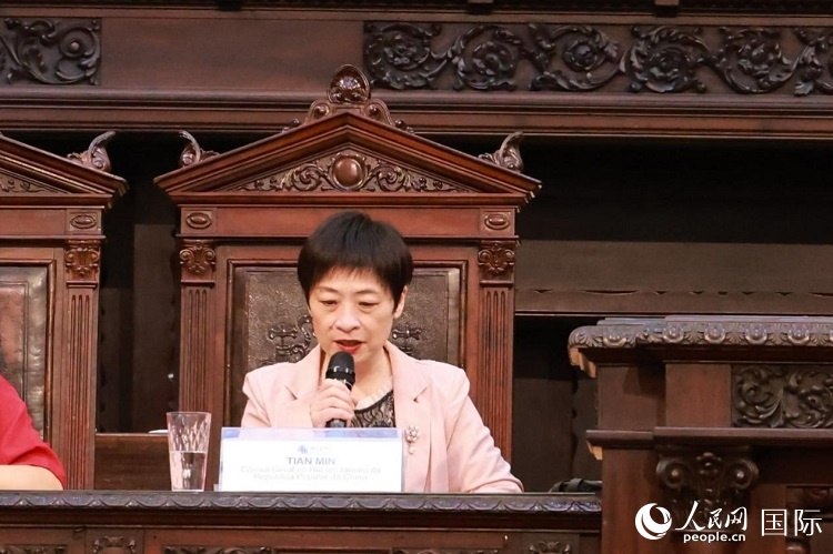 中國駐里約熱內(nèi)盧總領(lǐng)事田敏在活動中致辭。人民網(wǎng)記者 陳海琪攝