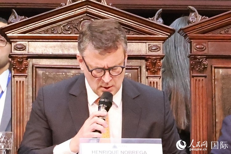 巴西中國友好協(xié)會主席恩里克·諾布雷加在活動中致辭。人民網(wǎng)記者 陳海琪攝