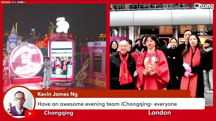 此次活動通過西部國際傳播中心海內(nèi)外平臺進(jìn)行全球直播,由重慶和倫敦的主持人,向全球觀眾展示兩地的精彩表演和互動活動,在線上實時感受到活動現(xiàn)場的熱切氛圍。重慶與倫敦兩地的市民通過大屏幕進(jìn)行實時互動,傳遞微笑、點贊和擁抱。