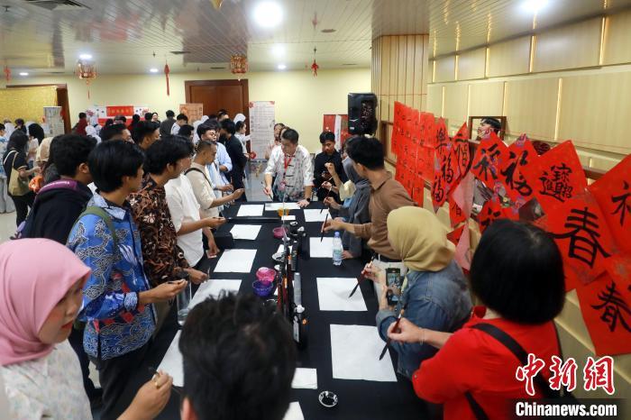當(dāng)?shù)貢r間11日,印度尼西亞阿拉扎大學(xué)孔子學(xué)院舉辦2025“金蛇迎新春,歡樂鬧元宵”春節(jié)暨元宵節(jié)文化游園活動,吸引師生們及各界代表等300余人參與。現(xiàn)場設(shè)置的多個文化攤位前人頭攢動,師生們學(xué)習(xí)書法、體驗(yàn)剪紙、猜燈謎、品茶藝,不亦樂乎。