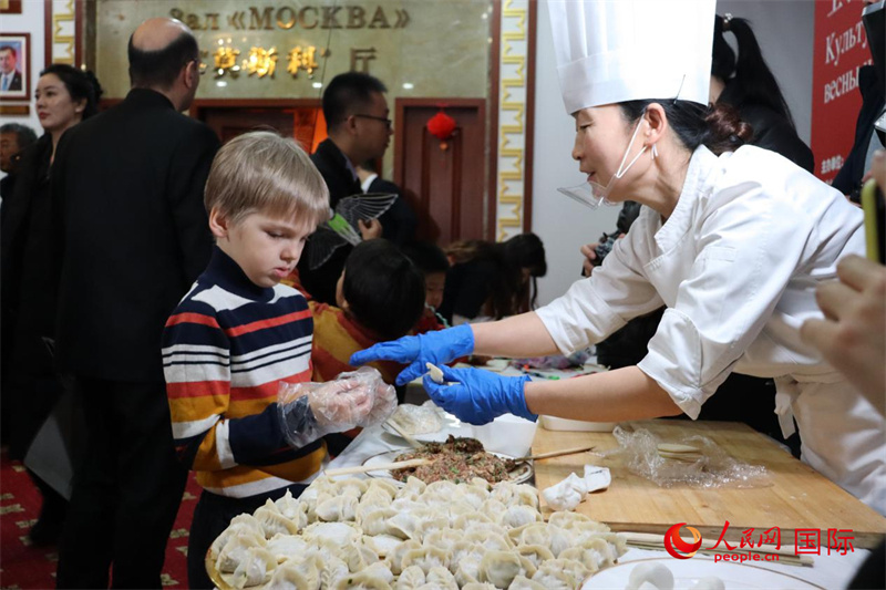 除了精彩的表演,活動(dòng)現(xiàn)場(chǎng)還設(shè)置了豐富的文化體驗(yàn)環(huán)節(jié)。上合組織國(guó)家駐華使節(jié)和家人們興致勃勃地參與了書法、繪畫等傳統(tǒng)藝術(shù)活動(dòng),感受中國(guó)傳統(tǒng)文化的博大精深。同時(shí),大家還親自上手,體驗(yàn)了包餃子、滾元宵等傳統(tǒng)美食的制作過程?,F(xiàn)場(chǎng)最活躍的當(dāng)屬上合組織國(guó)家使節(jié)的孩子們,來自俄羅斯的 7 歲小男孩廖沙一會(huì)兒在風(fēng)箏涂色臺(tái)前認(rèn)真地為風(fēng)箏上色,一會(huì)兒又跑到包餃子處,努力學(xué)習(xí)如何用小小的面皮包裹大大的肉餡??粗钦J(rèn)真又略顯緊張的表情,不難看出,包餃子對(duì)他來說確實(shí)是個(gè)不小的挑戰(zhàn)。廖沙的媽媽切爾尼紹娃是上合秘書處國(guó)際部的工作人員,她一邊用手機(jī)記錄著兒子的歡樂瞬間,一邊感慨地說:“我在上合工作快一年半了,去年在景山公園就參加過中國(guó)春節(jié)的慶?;顒?dòng),當(dāng)時(shí)就被中國(guó)新年豐富多彩的活動(dòng)深深吸引。中國(guó)文化真是太神奇了!”