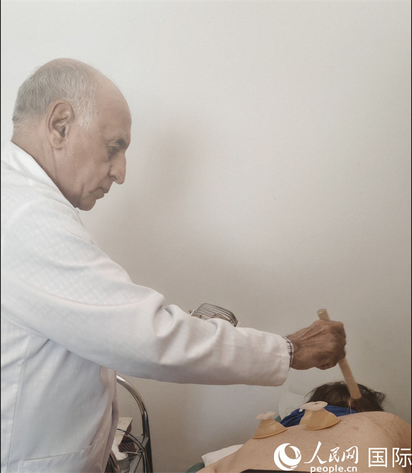 哈利勒正在對(duì)患者進(jìn)行拔罐治療。人民網(wǎng)記者 黃培昭攝
