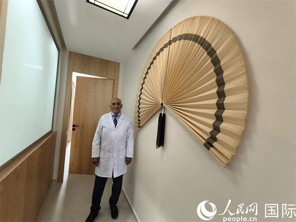 人民網(wǎng)卡薩布蘭卡2月20日電 (記者黃培昭)摩洛哥第一大城市卡薩布蘭卡的午后,陽(yáng)光灑在白色的建筑上,海風(fēng)裹挾著大西洋的氣息撲面而來(lái)。在這座以現(xiàn)代與傳統(tǒng)交織并存而聞名的城市,人民網(wǎng)記者來(lái)到市中心馬阿里夫區(qū)馬阿里夫廣場(chǎng)。車(chē)水馬龍的熱鬧廣場(chǎng)一角,翠綠挺拔的椰子樹(shù)掩映中,有一幢乳白色的六層樓建筑,建筑的三層,是一家與眾不同的診所。推開(kāi)古樸的木門(mén),映入眼簾的不是冰冷的醫(yī)療器械,而是古色古香的木質(zhì)家具,墻上掛著中國(guó)書(shū)法、中國(guó)扇子和中國(guó)山水畫(huà),空氣中彌漫著淡淡的艾草香氣。這里便是穆罕默德·哈利勒博士創(chuàng)辦的中醫(yī)診所——“中國(guó)傳統(tǒng)醫(yī)學(xué)中心”,它也是摩洛哥第一家中醫(yī)醫(yī)療機(jī)構(gòu)。