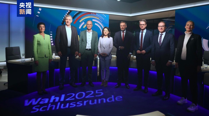 當(dāng)?shù)貢r間2月20日晚,在德國聯(lián)邦議院選舉前三天,來自八個政黨的代表進(jìn)行最后一場電視辯論,就烏克蘭危機(jī)、歐洲安全、義務(wù)兵役和氣候政策等關(guān)鍵議題展開了激烈交鋒。 聯(lián)盟黨(由基民盟及其姐妹黨基社盟組成)、社民黨和綠黨的總理候選人默茨、朔爾茨及哈貝克并未出席。
