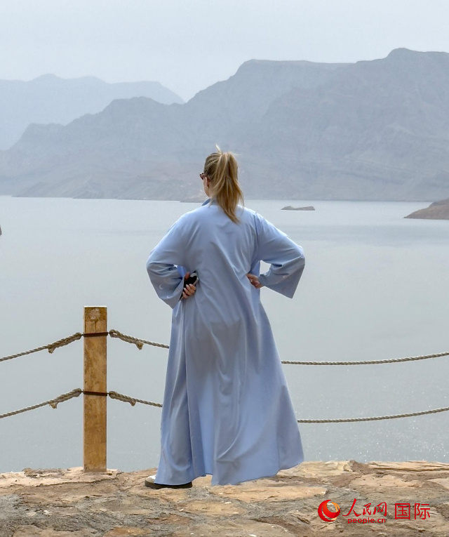 圖為一名游客正在俯瞰阿拉伯灣。人民網 塔里克·易卜拉欣攝