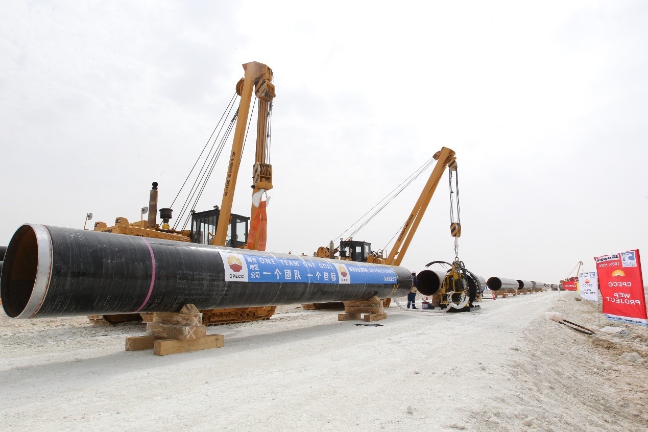 待焊接的輸油管道。CPECC海灣地區(qū)公司供圖