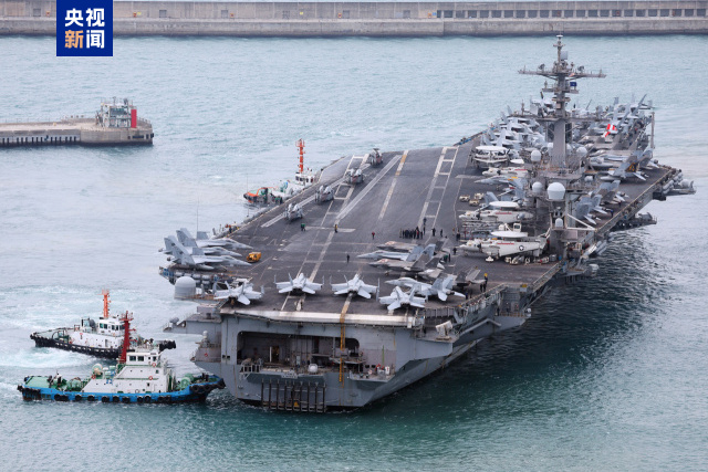 “卡爾·文森”號自1982年開始服役,是美國第三艘尼米茲級航空母艦,搭載了F-35C隱形戰(zhàn)斗機、F/A-18戰(zhàn)斗機、E-2C預(yù)警機、MH-60S海上作戰(zhàn)直升機等80多架飛機,船員5500余名。(總臺記者 張昀)
