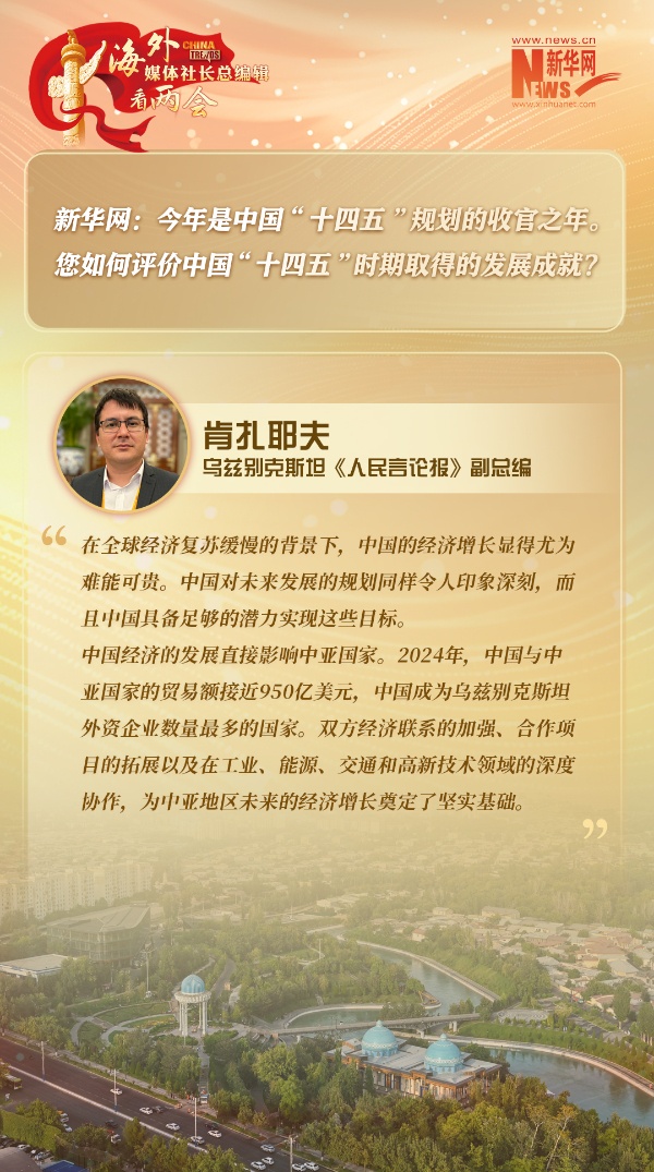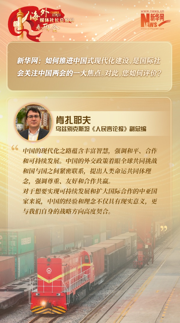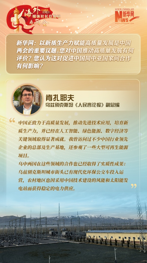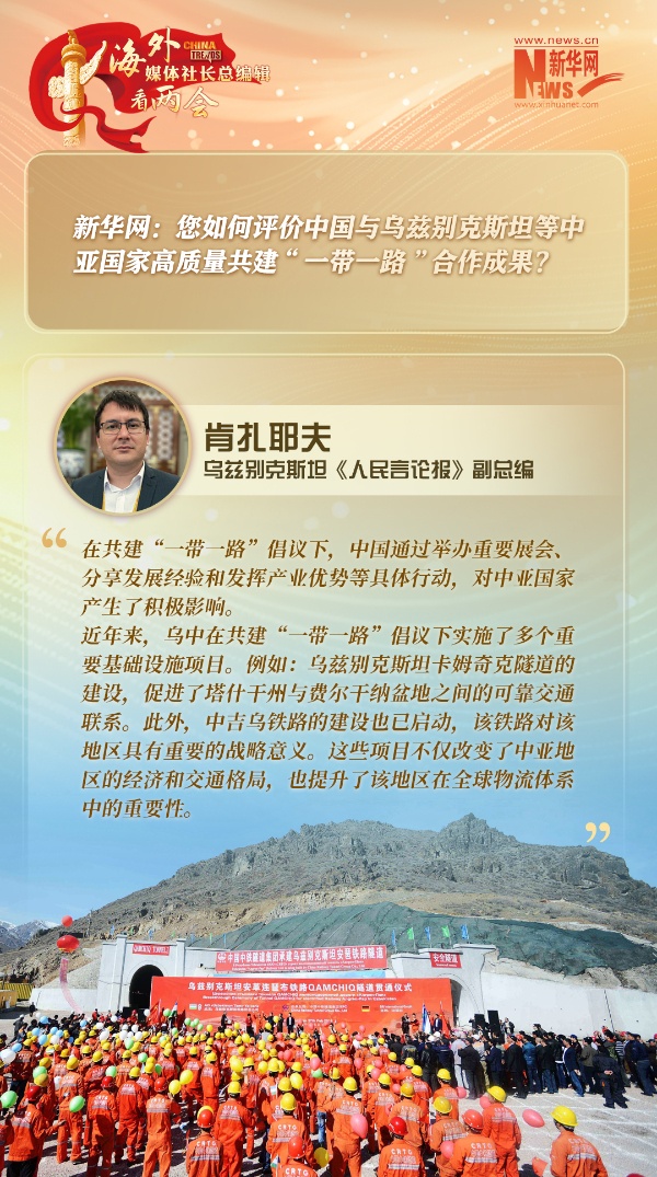 本期報道中,烏茲別克斯坦《人民言論報》副總編肯扎耶夫表示,中國的現(xiàn)代化之路蘊含豐富智慧,中國經(jīng)濟的高質(zhì)量發(fā)展和開放政策更是對中亞等地區(qū)國家有重要影響。從中吉烏鐵路到烏茲別克斯坦的環(huán)保公交車、風能和太陽能發(fā)電站,烏中在工業(yè)、能源、交通和高新技術領域的合作已取得顯著成果。