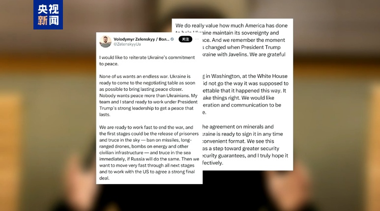 烏克蘭總統(tǒng)澤連斯基4日在社交媒體上發(fā)文說(shuō),他對(duì)日前與美國(guó)總統(tǒng)特朗普在白宮會(huì)晤時(shí)所發(fā)生的一切感到遺憾,烏方愿在任何時(shí)間簽署美烏礦產(chǎn)協(xié)議,愿盡快開(kāi)啟談判,以實(shí)現(xiàn)持久和平。