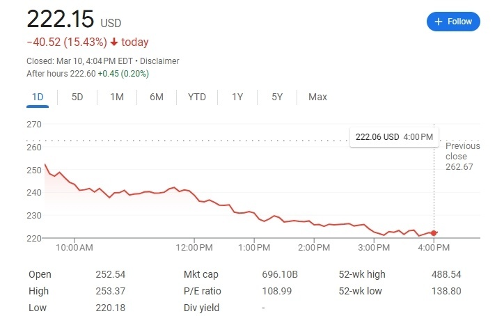 △截至美東時間10日收盤,特斯拉股價跌至每股222.06美元,當日跌幅達15.43%。