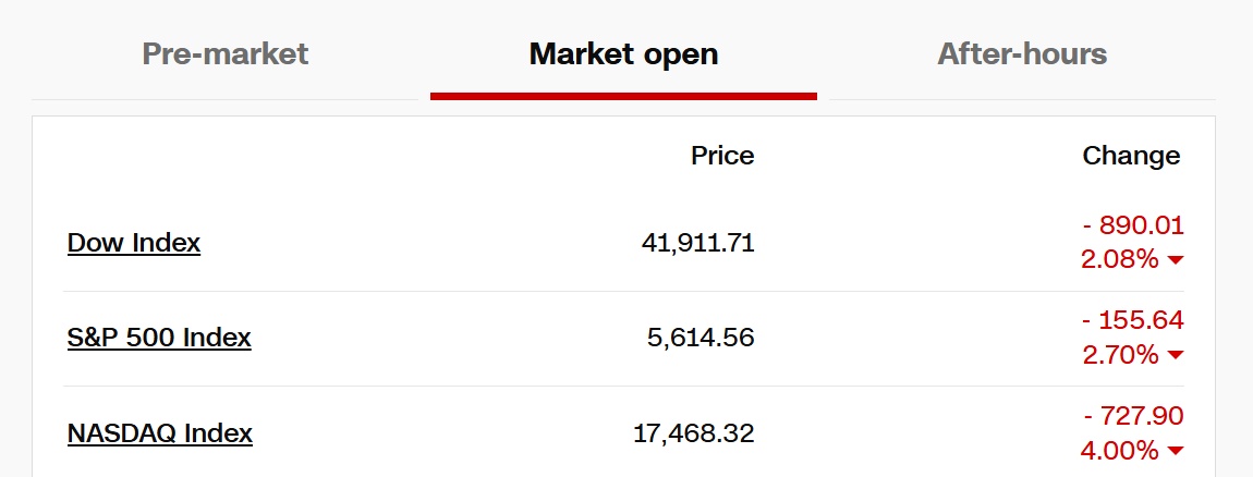 截至10日收盤時,美股三大指數(shù)集體收跌,道指跌2.08%,納指跌4%,標普500指數(shù)跌2.7%。