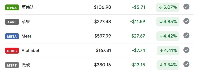 △10日收盤時,英偉達、蘋果、Meta、谷歌和微軟股價均大幅下跌。