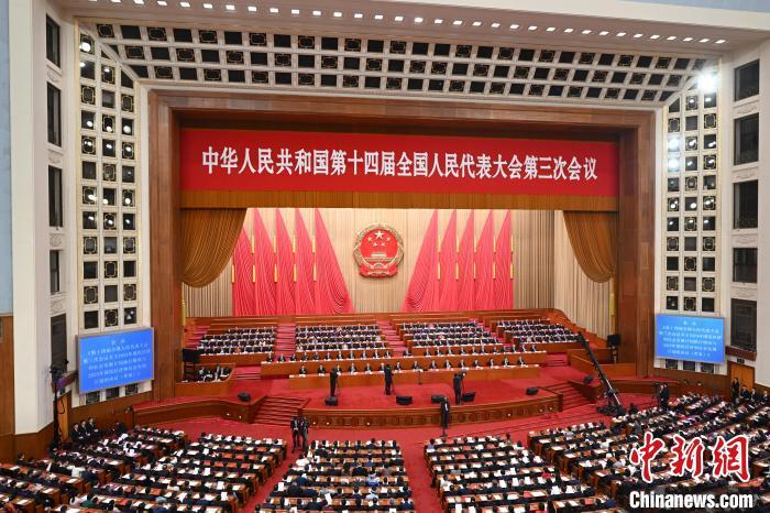 3月11日,十四屆全國(guó)人大三次會(huì)議在北京人民大會(huì)堂舉行閉幕會(huì)。 中新社記者 田雨昊 攝