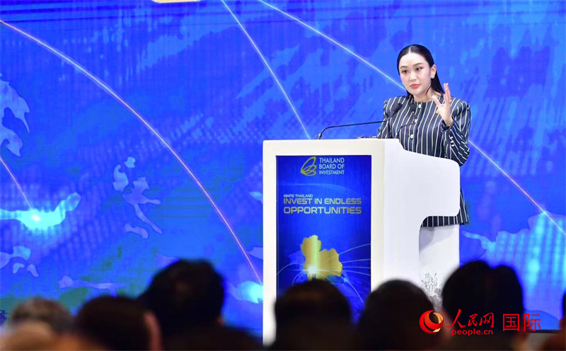 泰國(guó)總理佩通坦發(fā)表主題演講“點(diǎn)燃泰國(guó):泰國(guó)的無限投資機(jī)遇”。人民網(wǎng)記者 簡(jiǎn)承淵攝