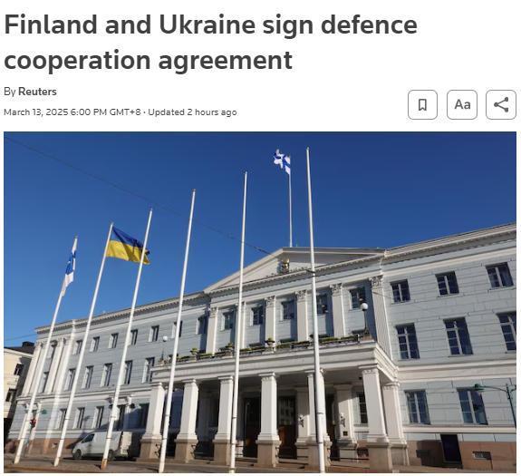 中新網(wǎng)3月13日電 據(jù)路透社報(bào)道,當(dāng)?shù)貢r(shí)間13日,芬蘭國(guó)防部表示,芬蘭與烏克蘭已簽署一項(xiàng)雙邊防務(wù)合作協(xié)議,將向?yàn)蹩颂m提供價(jià)值約2億歐元的軍事援助計(jì)劃。
