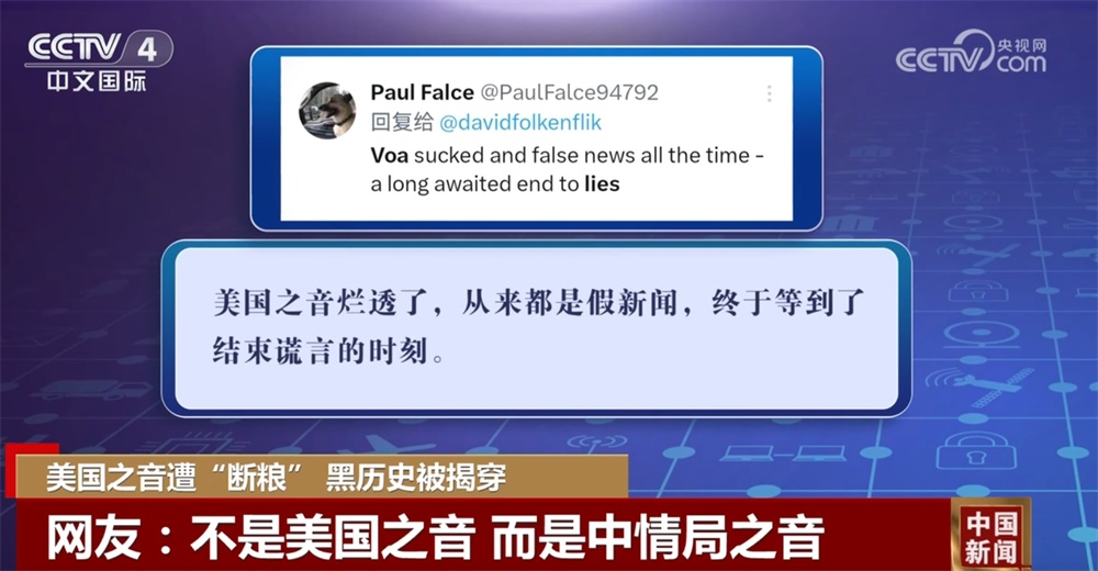 有網(wǎng)友指出,“美國(guó)之音爛透了,從來都是假新聞,終于等到了結(jié)束謊言的時(shí)刻?!薄安皇敲绹?guó)之音,而是中情局之音?!薄懊绹?guó)之音就是垃圾”。