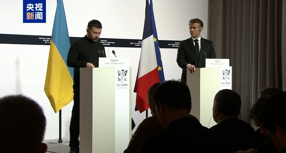 當(dāng)?shù)貢r(shí)間3月26日,法國總統(tǒng)馬克龍與烏克蘭總統(tǒng)澤連斯基在愛麗舍宮會(huì)面后召開聯(lián)合新聞發(fā)布會(huì)。