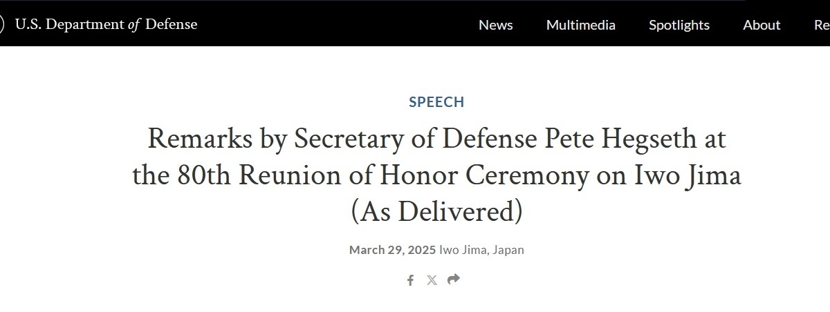 美國(guó)防部官網(wǎng)上發(fā)布的赫格塞思演講原文