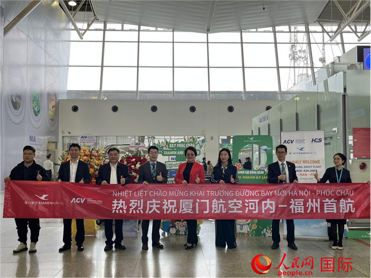 人民網(wǎng)河內(nèi)3月30日電 (記者楊曄)當(dāng)?shù)貢r(shí)間3月30日,廈門航空MF8697航班平穩(wěn)降落在越南河內(nèi)內(nèi)排國(guó)際機(jī)場(chǎng),標(biāo)志著廈航福州—河內(nèi)定期往返航線正式開通。