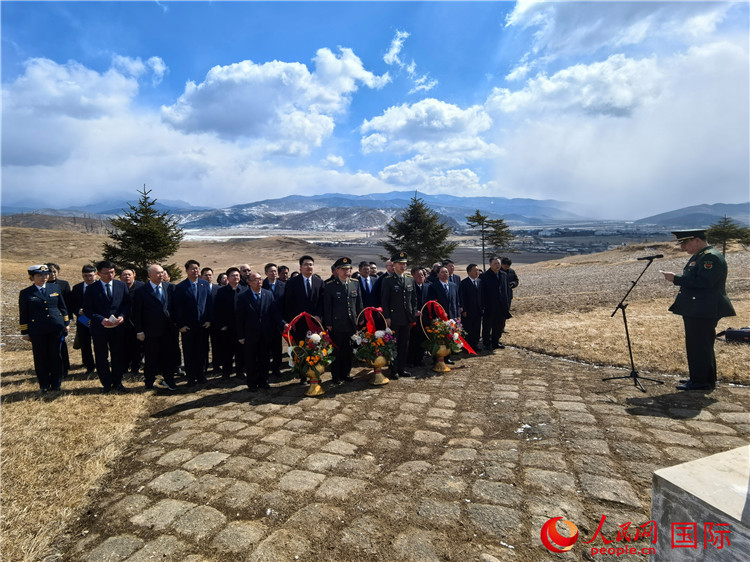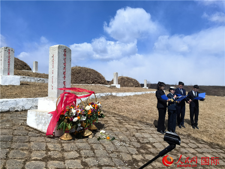 今年是中國(guó)人民志愿軍抗美援朝出國(guó)作戰(zhàn)75周年。3月30日,在清明節(jié)即將到來(lái)之際,中國(guó)駐朝鮮大使王亞軍率中國(guó)駐朝鮮使館、駐清津總領(lǐng)館全體館員、在朝中資機(jī)構(gòu)和媒體代表、旅朝華僑代表等近60人趕赴咸鏡南道長(zhǎng)津郡,祭掃長(zhǎng)津邑、新興里中國(guó)人民志愿軍烈士陵園,向長(zhǎng)津郡下碣隅里楊根思烈士紀(jì)念碑敬獻(xiàn)花籃,祭奠緬懷在長(zhǎng)津湖戰(zhàn)役中犧牲的中國(guó)人民志愿軍英烈。