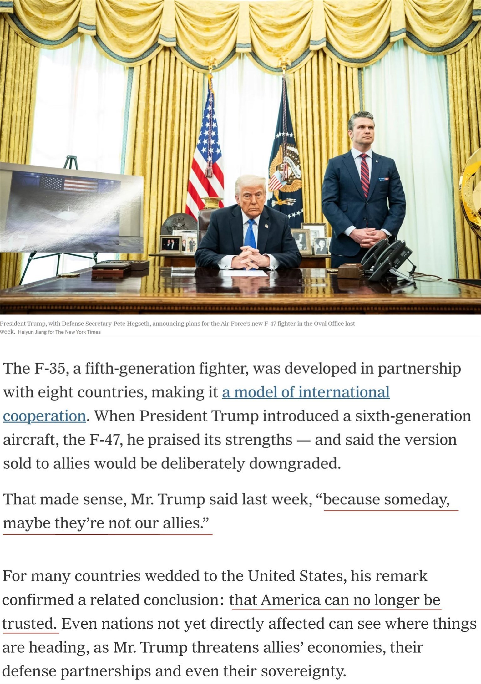 美國《紐約時報》注意到美國近期宣布研發(fā)的第六代戰(zhàn)斗機(jī)F-47。