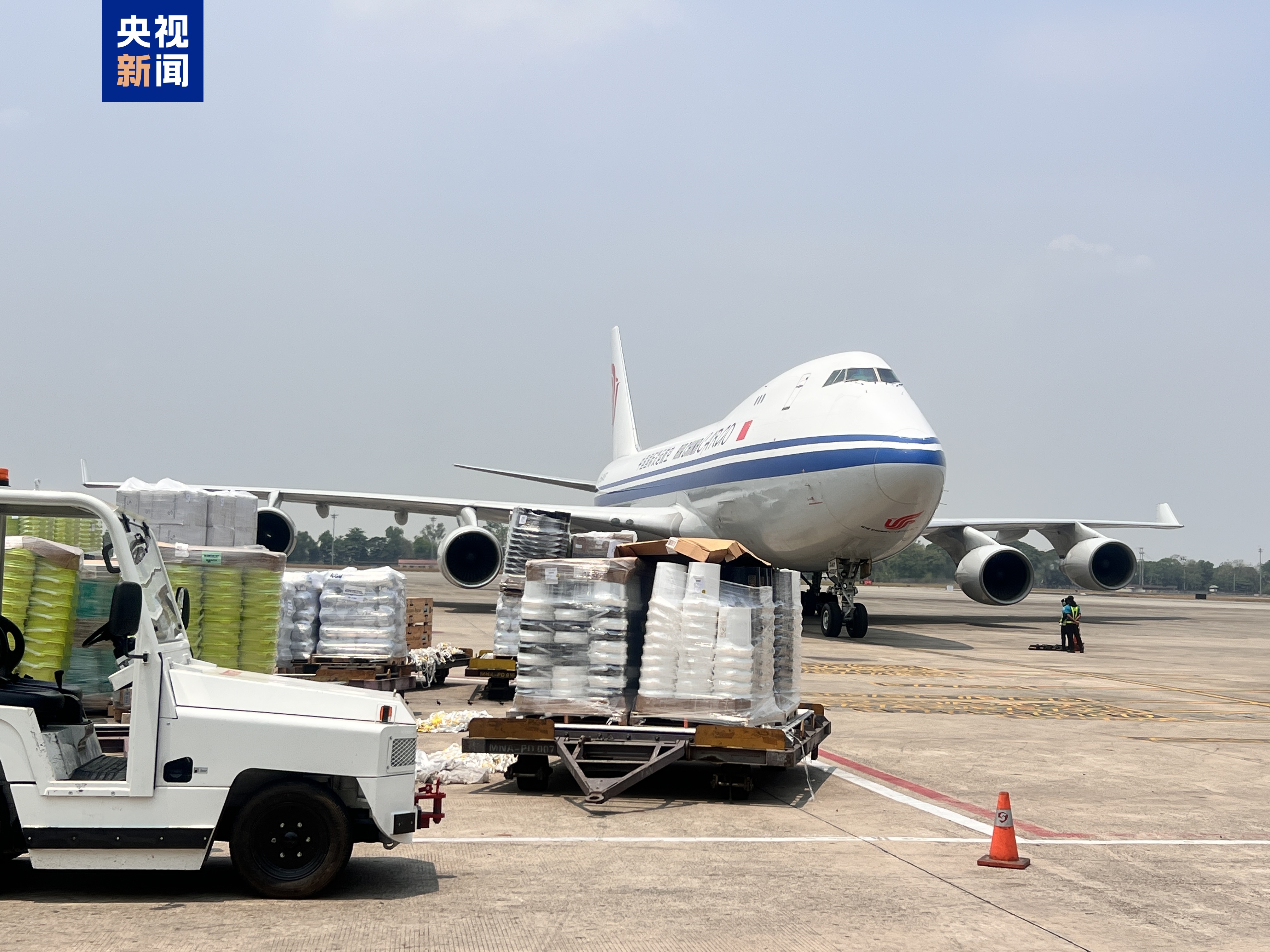 當(dāng)?shù)貢r(shí)間4月9日12時(shí)30分左右,中國政府援緬第五批抗震救災(zāi)物資抵達(dá)緬甸仰光。第五批物資主要包括266頂帳篷 、20000個(gè)蚊帳、9000塊防水布、2000箱方便面等,總重超過91噸。(總臺(tái)記者 林曦)