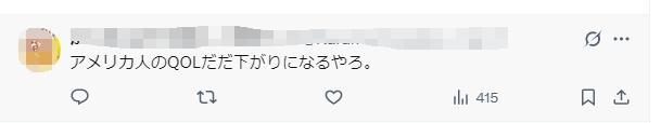 還有日本網(wǎng)友指出,美國的關(guān)稅政策,會導(dǎo)致美國人的生活質(zhì)量下降。