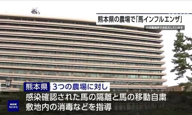 日本廣播協(xié)會(huì)(NHK)報(bào)道稱,目前,熊本縣正針對(duì)這3家養(yǎng)馬場采取隔離感染馬匹、避免轉(zhuǎn)移飼養(yǎng)馬匹、設(shè)施消毒等措施。