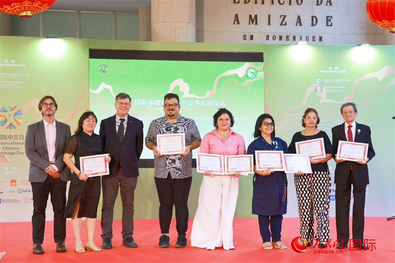 里約孔院為近年來(lái)努力推動(dòng)中文教育的巴西教育界友好人士頒發(fā)榮譽(yù)證書(shū)。人民網(wǎng)記者 陳海琪攝