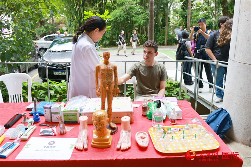 巴西民眾在中醫(yī)體驗(yàn)區(qū)嘗試中醫(yī)療法。人民網(wǎng)記者 陳海琪攝