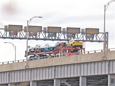 針對(duì)美國(guó)新關(guān)稅政策,加拿大對(duì)美國(guó)汽車(chē)對(duì)等征收25%關(guān)稅措施已于日前生效。圖為近日,在加拿大安大略省尼亞加拉瀑布市加美邊境地帶,一輛滿載的汽車(chē)運(yùn)輸車(chē)通過(guò)劉易斯頓—昆斯頓橋開(kāi)往加拿大。鄒 崢攝(新華社發(fā))