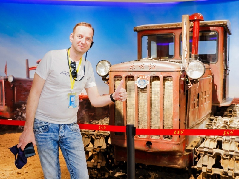 在東方紅農(nóng)耕博物館,從1958年中國第一臺履帶式拖拉機的復(fù)原模型,到搭載北斗導(dǎo)航系統(tǒng)的無人駕駛電動拖拉機,豐富的展品見證了中國農(nóng)業(yè)機械化、智能化的發(fā)展歷程。館內(nèi)一副世界地圖展示了一拖產(chǎn)品的全球出口網(wǎng)絡(luò),記者們紛紛駐足尋找自己國家的坐標(biāo),現(xiàn)場響起陣陣贊嘆。