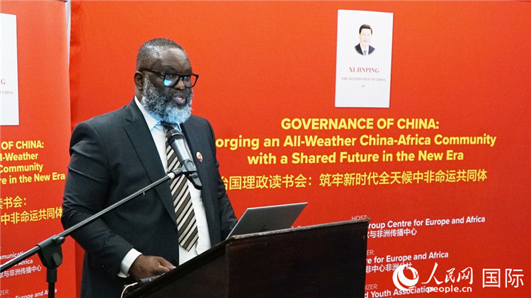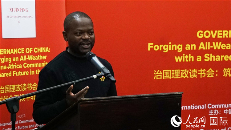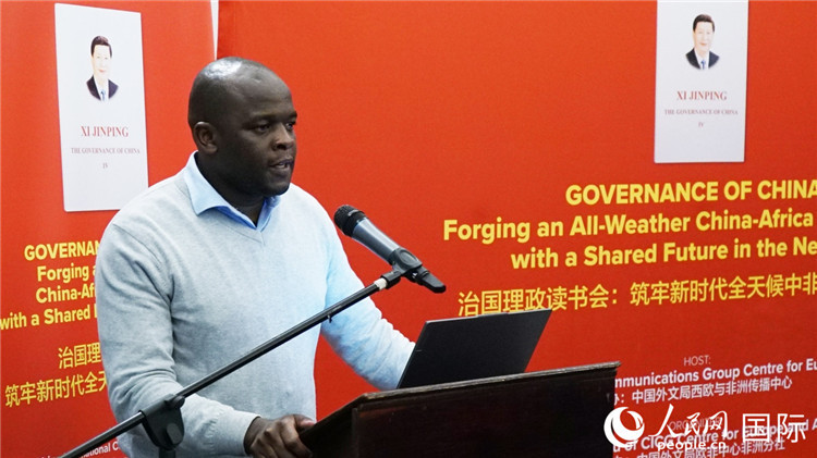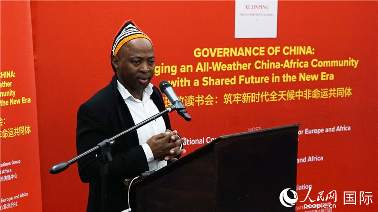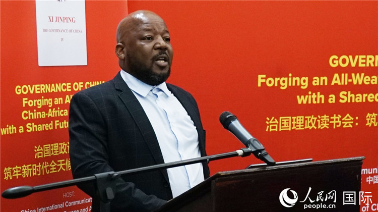約翰內(nèi)斯堡大學(xué)非洲中國研究中心研究員西澤·恩卡拉在讀書會上發(fā)言。人民網(wǎng) 劉暢攝