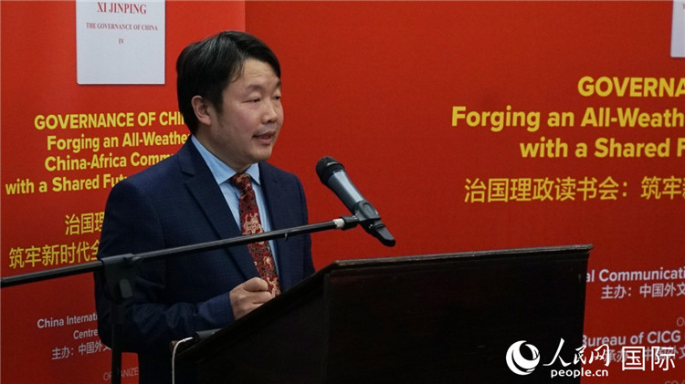 中國外文局歐非中心非洲分社首席記者在讀書會上發(fā)言。人民網(wǎng) 劉暢攝