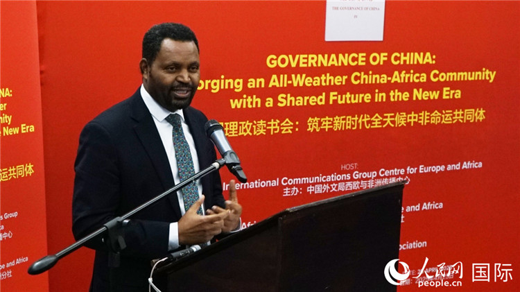 埃塞俄比亞駐南非公使銜參贊顧秋博·柏拉楚在讀書會上發(fā)言。人民網(wǎng) 劉暢攝
