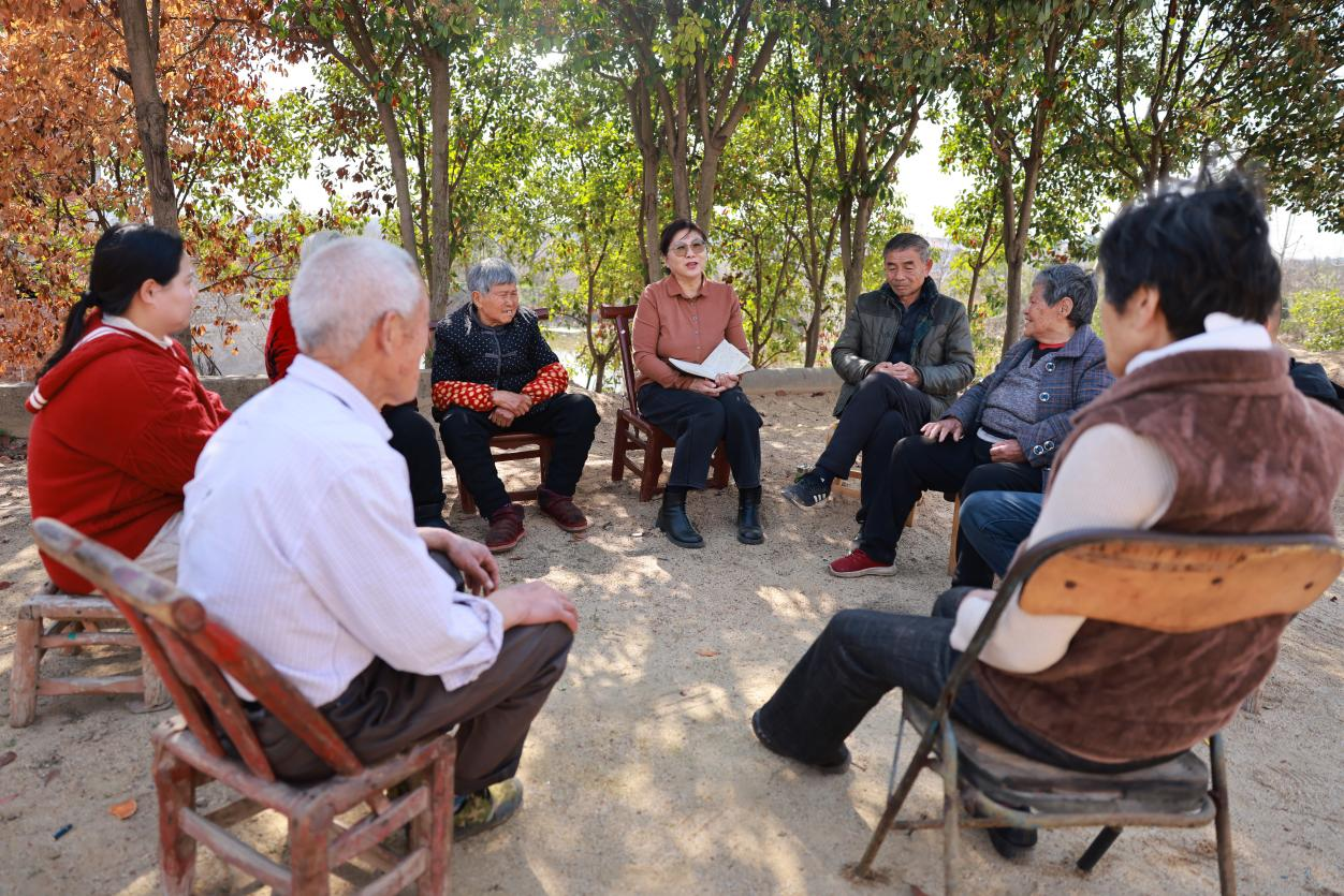 在高安村屋場院子會上,張幼萍宣講全國兩會精神,與村民們一起話產(chǎn)業(yè)發(fā)展、議楚劇傳承,暢談鄉(xiāng)村振興新思路。