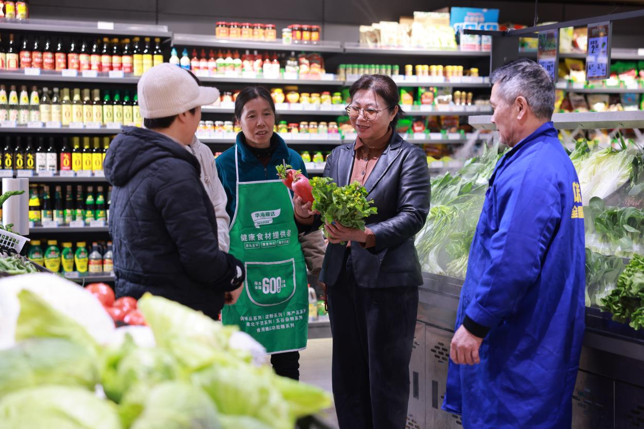 張幼萍來到孝感“盛鮮生”生鮮超市,聽取消費(fèi)者對農(nóng)特產(chǎn)品的意見,做好農(nóng)業(yè)產(chǎn)業(yè)化發(fā)展的“后半篇文章”。湛開叢 攝