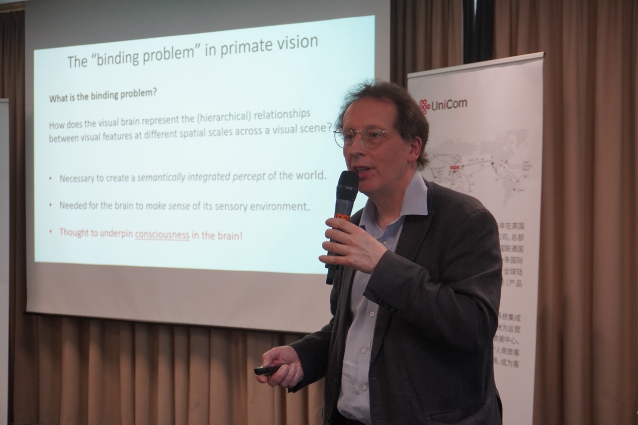 牛津大學(xué)應(yīng)用心理學(xué)研究中心西蒙·斯特林格博士介紹人工智能具體發(fā)展?;顒?dòng)主辦方供圖